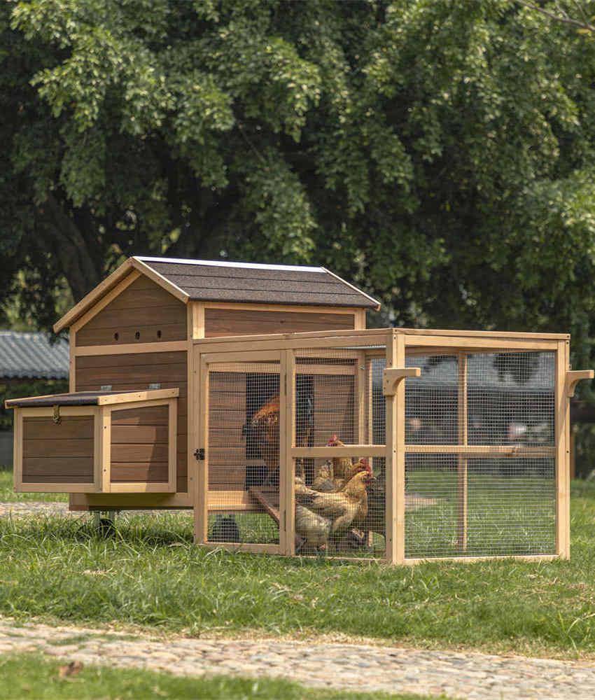 The portable chicken coops come with smooth wheels and handles, making it easy to move around your yard and creating a healthier and more comfortable environment for your chickens and add modernity to your backyard and house.