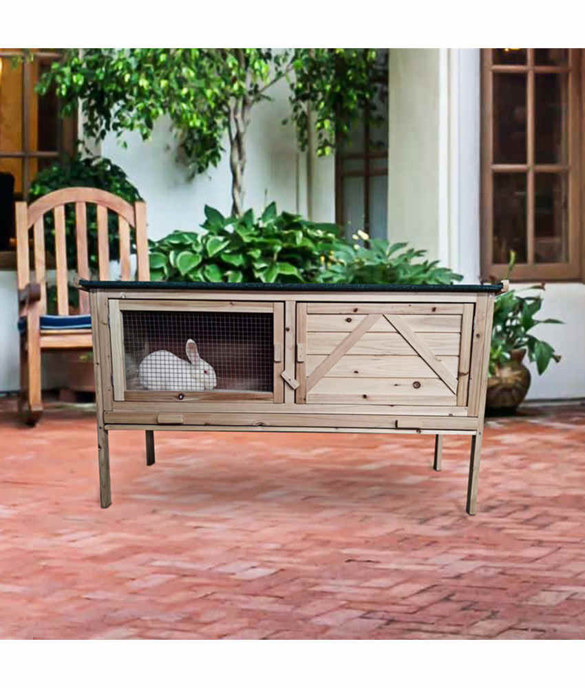 Dale a tus pequeños animales un refugio seguro y cómodo con jaulas para conejos de interior! Construido con madera maciza de abeto., Estas jaulas para conejos de interior proporcionarán años de uso con muy poco mantenimiento.. El techo de asfalto con bisagras brinda protección contra los elementos y le brinda fácil acceso al interior de la conejera.. Una práctica bandeja extraíble en la parte inferior hace que la limpieza regular sea rápida y sencilla.
