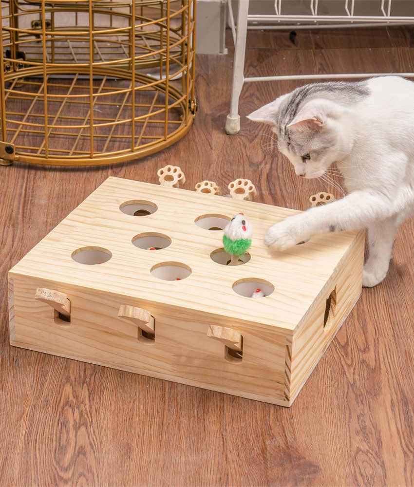This is a whack-a-mole cat interactive cat toy box. imitating cat and mouse game. arouse the curiosity of the cat. let the cat enjoy it. Cat toy box can also enhance the feelings between the pet and the owner. increase the amount of exercise to promote the health of the cat.
