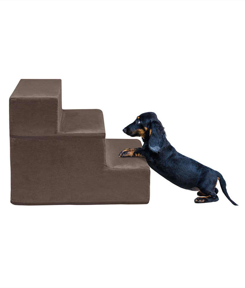 Made with high-grade foam, this set of dog steps for high bed helps to relieve pressure on the paws and joints when they try to reach a high bed or couch. Further,The cover is removable and easy to clean using a washing machine with cold water.