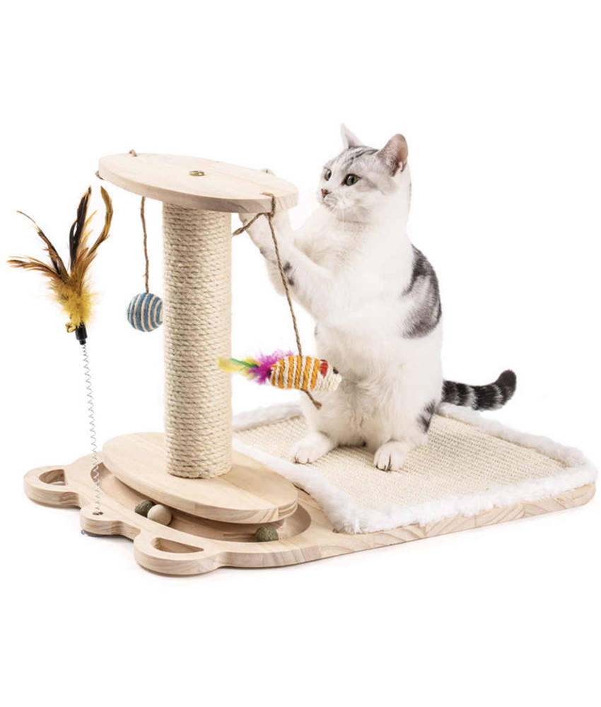 wood posts for a sturdy feel and durable construction. Furthermore,Includes scratching posts and a toy.