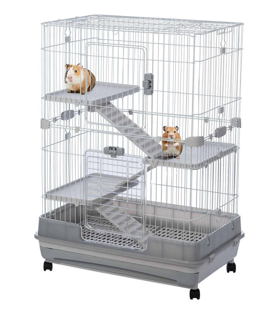 Pull-out debris tray with removable bottom grilles allow for easy cleaning up. 4 casters on the bottom are omni-directional for smooth rolling, and 2 of them are lockable to keep it in place. Considerate 1cm/0.4″ bar spacing keeps your animals from coming out. Complimentary clips reinforce the stability.