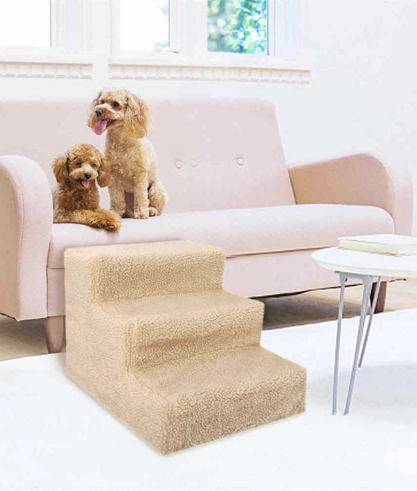 The pet ramp for couch helps your pet get safely up on the couch or their favorite spot on the bed without having to lift or carry them. No more jumping or struggling for your pet. The comfort pet stairs are perfect for older Dogs and/or cats, especially ones recovering from an injury or with hip or joint issues. The stairs are easily moved from room to room and have a removable and washable comfort cover. Give your pet the independence to get to their favorite spot with ease.