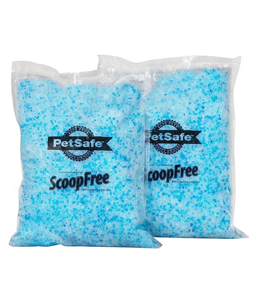 The ScoopFree Premium Blue Crystal Litter 2-Pack is low tracking and 99% dust-free, which means you can do a whole lot less sweeping up! Just 1 bag can last up to 30 days in a single-cat householdthat means less time cleaning the litter box so you have more moments to snuggle with your cat! Crystal litter absorbs urine and dries solid waste to quickly remove odors 5 times faster than clumping clay litter. This product includes 2 pre-portioned bags of lightly scented premium crystal litter ready for use. This litter can be used with any brand litter box or reusable tray, but we recommend using it to refill the PetSafe Deluxe Crystal Litter Box. Your pet deserves the best. Trust PetSafe to help keep your pet healthy, safe and happy.