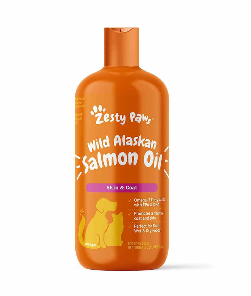 As a source of Omega-3 fatty acids (EPA and DHA), Zesty Paws mouthwatering Wild Alaskan Salmon Oil is a premium fish oil that provides support as a skin health booster to help canine and feline pets – large or small – look as great as they feel. Your dog and cat will surely get hip to it and love it!