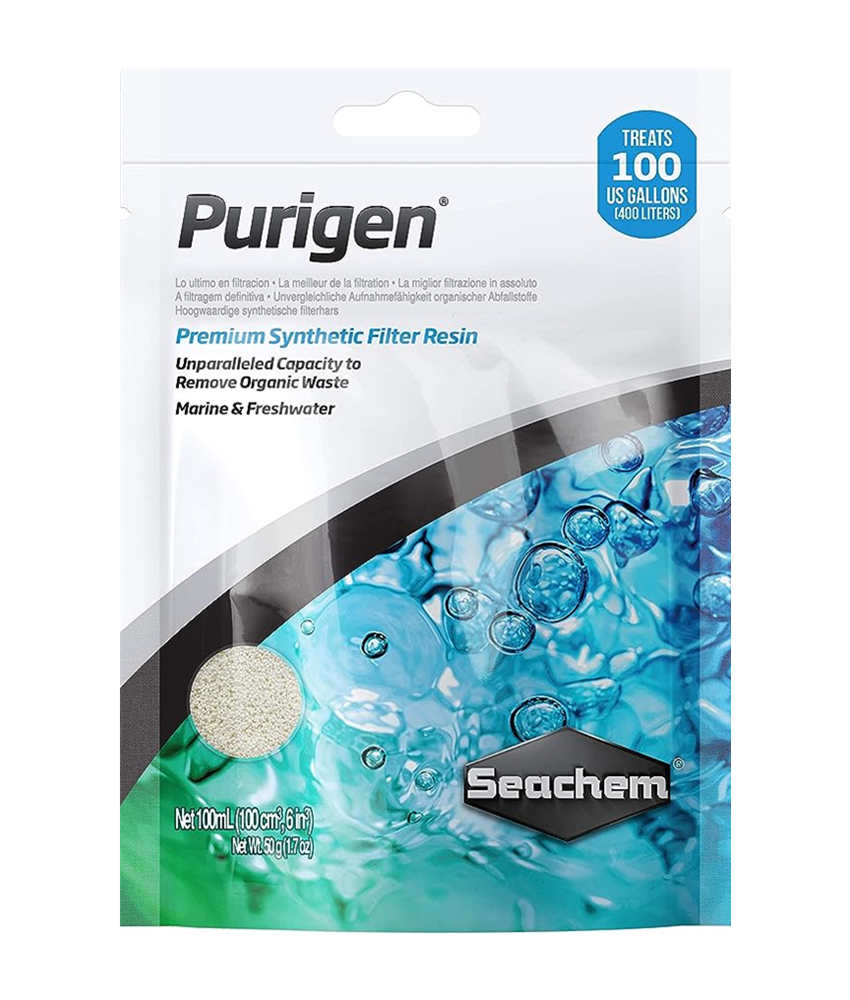 Seachem Purigen is not a mixture of ion exchangers or adsorbents, but a unique macro-porous synthetic polymer that removes soluble and insoluble impurities from water at an excelled rate and capacity.
